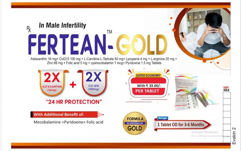 Product Composition : Astaxanthin 16mg+ CoQ10 100mg + L-Carnitine L-Tartrate 50mg+ Lycopene 4mg + L-arginine 20mg + Zinc 66mg+ Folic acid 5mg + cyanocobalamin 1mcg+ Pyridoxine 1.5 mg